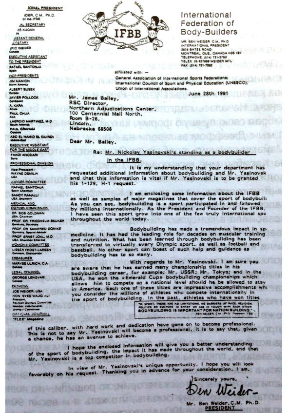 Мы с Джеффом подали заявку на участие в чемпионате США и получили отказ, в котором было сказано, что в чемпионате США могут участвовать только граждане Соединенных Штатов. Тогда мы подали заявку на участие в чемпионате Северной Америки, в котором могут участвовать Канада и Мексика, а значит, это был международный турнир. Но опять получили отказ. Естественно, я был очень расстроен. Тогда мы с Джеффом приняли решение написать Бену Вэйдеру, президенту IFBB (Международной федерации бодибилдинга), с просьбой помочь и оказать поддержку. Бен Вэйдер ответил и написал, что сделает все возможное. Но американская Федерация отказала и Вэйдеру. Мы оказались в тупике. Но тут Бен Вэйдер прислал письмо, в котором посоветовал мне принять участие в каком-нибудь другом турнире, который дает право получить карту профессионала. И здесь началась следующая эпопея в моей жизни. Первая называлась: «Как я уезжал в Америку», а эту можно назвать: «Как я получал карту профессионала».