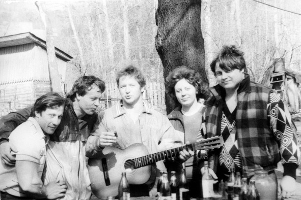 На даче в Малаховке. Слева направо – Я, Василий Захаревич, Лена Захаревич, Юрий Захаревич – 2-й олимпийский чемпион