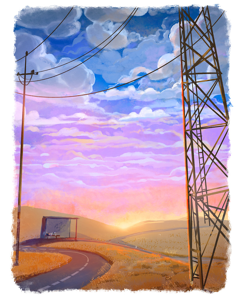 Вика обожала сады и заброшенную дорогу; особенно ей нравилось сидеть на тёплой скамейке автобусной остановки, читать принесённые с собой из дома книги, а вечерами наблюдать за тем, как солнце скрывается за верхушками деревьев.