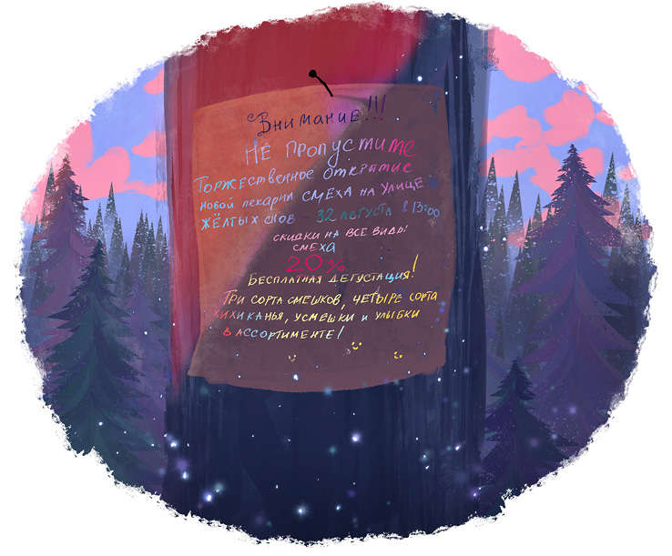 «Что за ерунда? – гадала Вика, торопясь домой. – Пекарня смеха, тридцать второе августа… Явно кто-то пошутил… Но в чём смысл такой шутки?»