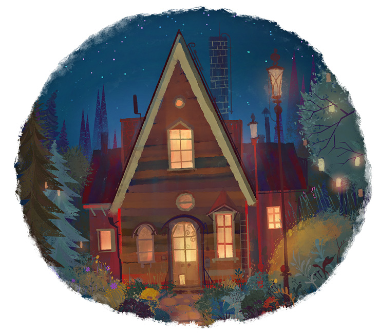 Скоро показались жёлтые огни. Вот только это совершенно точно были не огни многоэтажек на окраине её родного города! Впереди горели окна одинокого двухэтажного дома с треугольной крышей и двумя старинными масляными фонарями перед крыльцом.