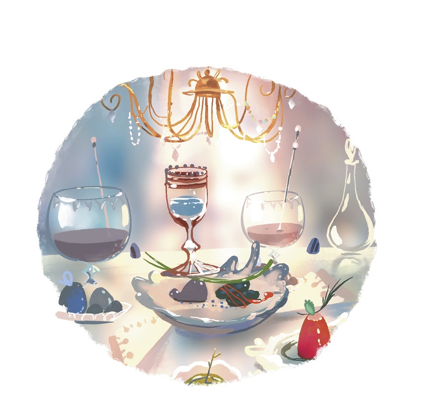 Усевшись на свободный стул, Вика в восхищении уставилась на стоявшую на хрустящей скатерти фарфоровую тарелку. На ней была не просто роспись, а целая картина! Настоящее произведение искусства, из такой даже как-то неловко кушать…