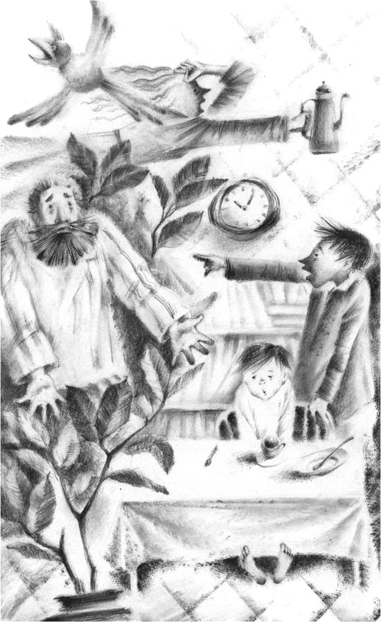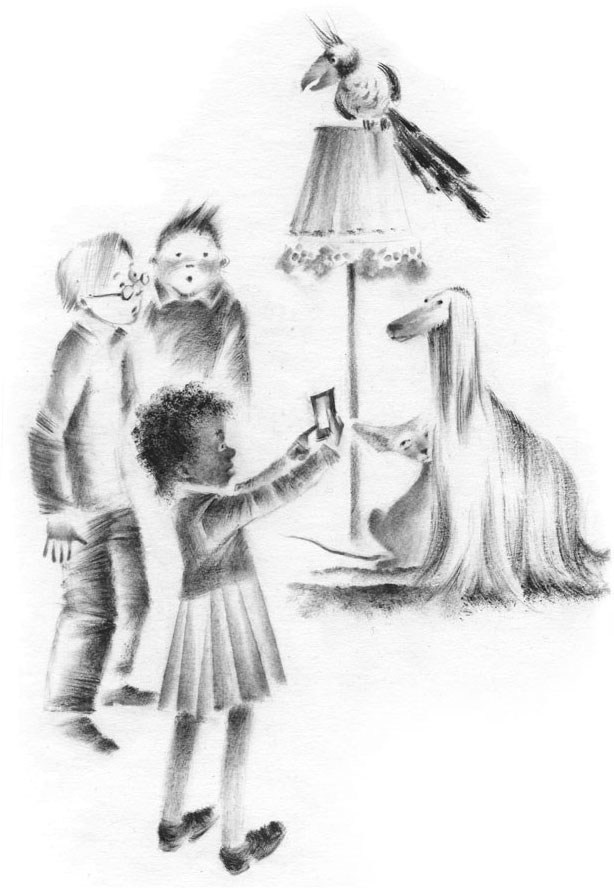 В комнате их уже поджидал зверинец. Пёсинус вскочил и завилял хвостом, что означало: «Рад вас видеть!» Котинус приоткрыл один глаз и дёрнул ухом, что означало: «Явились – не запылились». А Птангенс перелетел с люстры на торшер и хрипло отчеканил: «Штор-р-мовое пр-р-едупреждение!» – и это вообще могло означать всё что угодно.