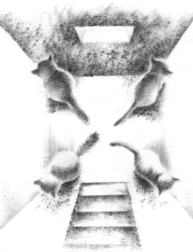 Друзья осторожно посветили фонариками. Действительно, все углы подвала были заняты кошками. Они сидели носом к стене и не шевелились.