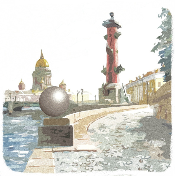 Друзья! Хочу вас познакомить с другом,Прекрасным городом Санкт-Петербургом.Живёт он на реке Неве…и любит дождь.Одет в гранит, базальт и мрамор,Дворцы, музеи, крепости и храмы……ещё игривый театральный дух.Знакомьтесь – мой друг Санкт-Петербург!***Широка и глубока, то спокойна, то буйна,Петербург стоит на ней, берега все из камней,Распуская рукава, огибает острова,Называется река именем простым – Нева.***Две красные колонны, два красных маяка,Под ними Волга, Днепр и Нева-река.Ростры кораблей торчат из них батальные,Поэтому зовут их все – Ростральные.***