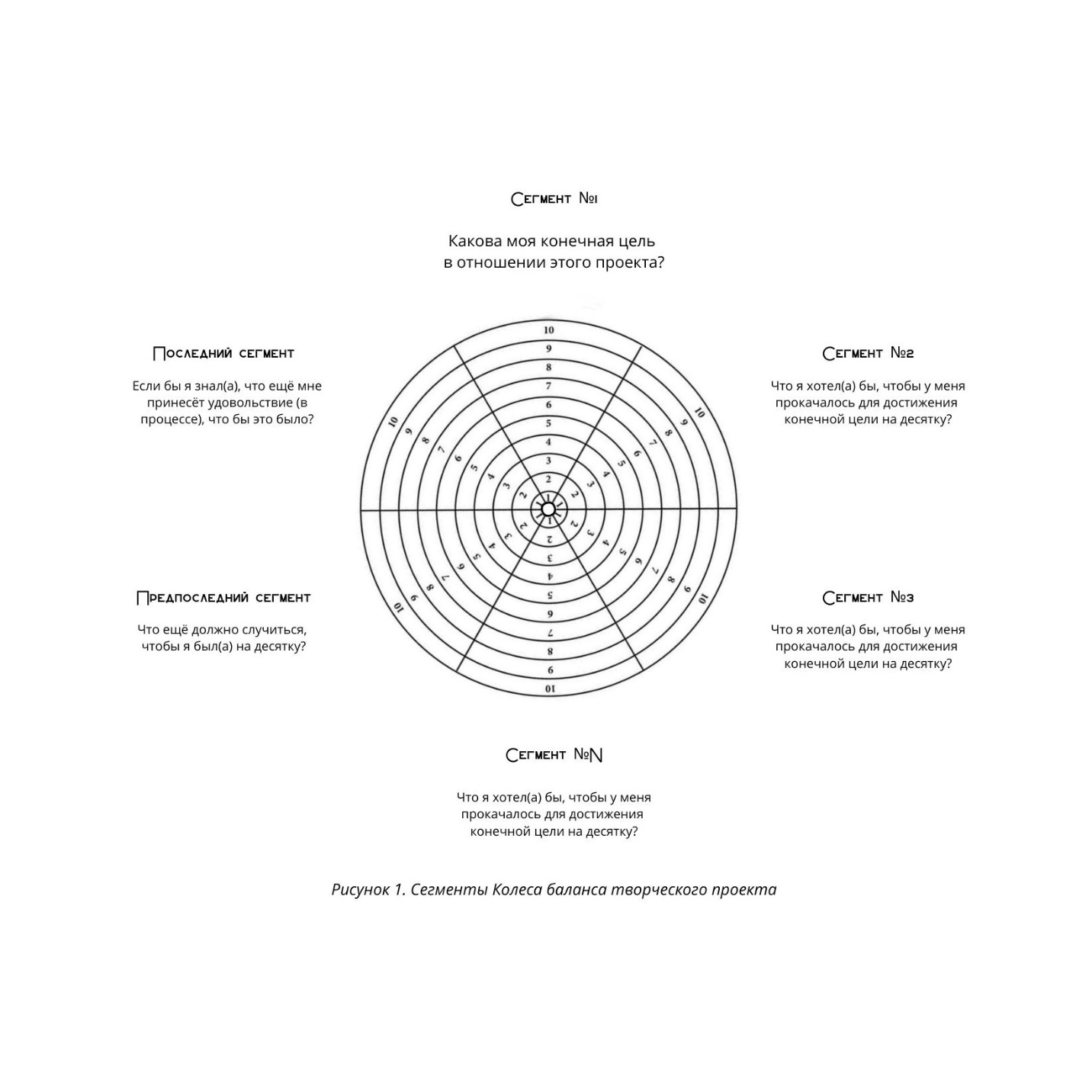 Когда прописаны все уровни первого сегмента «Колеса баланса творческого проекта», следующая задача – определить, где ты находишься сейчас: то есть свою точку «А».