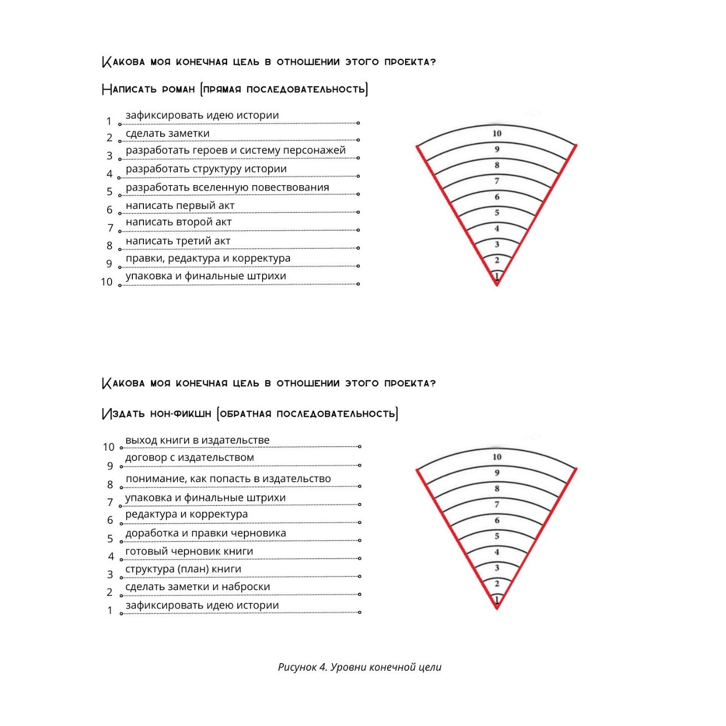 На следующих страницах я покажу, в чём привлекательность «КБ(Т)П» конкретно для писателя, на примере планирования двух типов трудов: художественного романа и нон-фикшн книги. Как адаптировать его под твои нужды, выходящие за рамки этих примеров, – решать тебе.