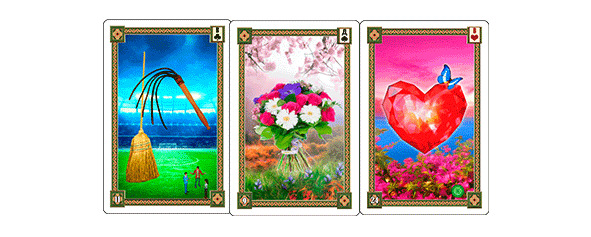 Дополнительно, можно предположить, что раз это люди молодые, то такая триада достаточно точно описывает любовные страсти, которыми обычно насыщены отношения в таком возрасте. Комбинация Плеть+Букет может показывать и физическое удовлетворение, обильно окрашенное радостными эмоциями и переживаниями, о чём информирует карта Сердце.