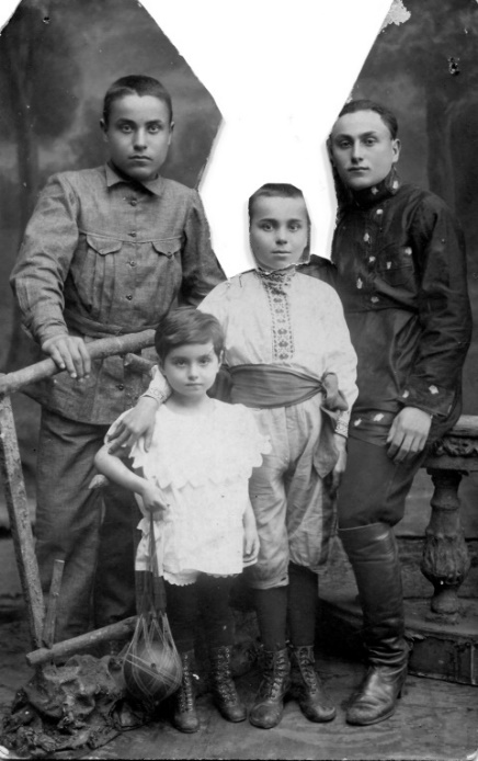 Дети семьи Костинских. Слева направо: Миша, Базя, Яша и Петя. В центре кого-то устранили. Семейный архив