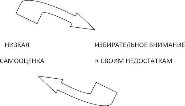 У людей с заниженной самооценкой так называемое «избирательное внимание». То есть повышенное внимание к информации, которая соответствует их негативному восприятию себя. Если вы ищете у себя жир, то вы его найдёте. Если вы ищете в себе недостаток, вы его обязательно найдёте.