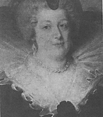Королева Мария Медичи. Правила как регентша при несовершеннолетнем сыне Людовике XIII. При ней в Бастилии сидел принц Конде и по обвинению в колдовстве была казнена Элеонора Галигай.