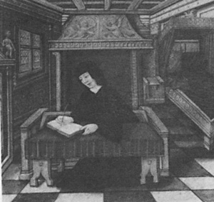 Известный средневековый историк-хронист Филипп де Коммин за рабочим столом. Мемуары Коммина – прекрасное документальное свидетельство по истории драматической борьбы Людовика XI с бургундским герцогом Карлом Смелым. Жертвами этой борьбы пали коннетабль Сен-Поль и граф Жан д'Арманьяк.