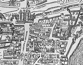 План Парижа с крепостью Бастилией из муниципальной библиотеки города Кайен. Середина XVI века.