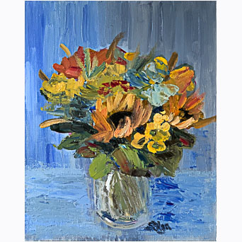 Два года назад начала писать маслом под руководством Заслуженного художника России Долгачева Евгения Анатольевича.