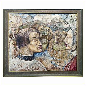 «Богоматерь» флорентийская мозаика 78 х 60,5 см.:мрамор, родонит, яшма, беломорит, флюорит, лепидолит, тигровый глаз, агат, халцедон, сердолик, нефрит медовый.