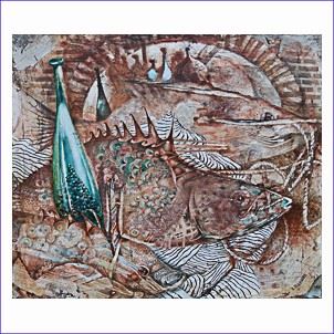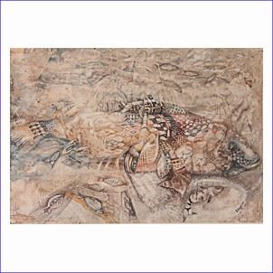 Пейзаж с рыбой 61х86 бумага. акрил, акварель, авторская техника 2018 г. г. Калининград