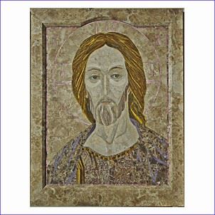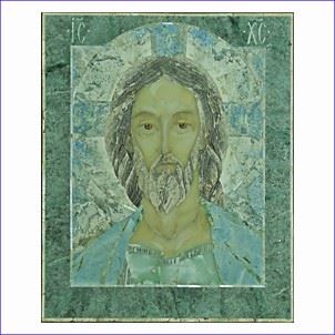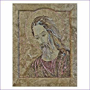 «Спас» флорентийская мозаика 55 х 44 см жадеит, виолан, хризопраз, агат, окаменелое дерево, нефрит медовый, беломорит, сердолик, халцедон.