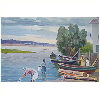 На берегу в жаркий полдень. к.м. 22*35 1973 г. Это река Бия в г. Бийске Алтайского края.