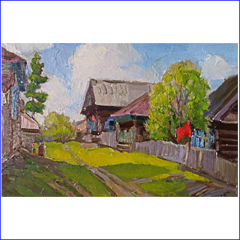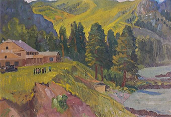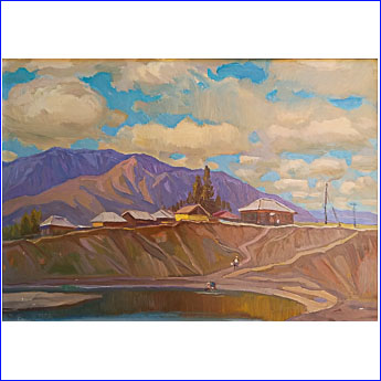 Село Абай в Горном Алтае. к.м. 39*55 1980 г. Эту работу Гаврил Иванович представил на Всесоюзной выставке в Москве посвященной 40-летию Победы в ВОВ в 1985 г и стал Лауреатом.