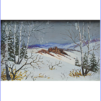 1. Зима в Карпатах. к. гуашь. 18*30 70-е годы. Под стеклом в деревянной рамке.
