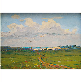 Но он не только театральный художник, но и живописец- пейзажист. Его привлекает богатство природы, ее гармония. В нашей семейной коллекции две работы художника, подаренные и подписанные автором Прибыткову Гаврилу Ивановичу.