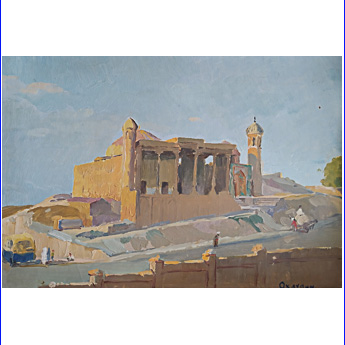 Охлупин Аркадий Петрович (1926–1993) родился в поселке Ертарский завод Свердловская обл. Закончил Свердловское художественное училище в 1944 г., Московский художественный институт им. В.Сурикова (1951 г), где его преподавателями были П.Д.Корин, С.А.Чуйков, А.М.Грицай. Брал уроки у П.П.Кончаловского, И.Э.Грабаря. Работал вместе с Е.И.Гудиным, Е.Пинаевым, В.Терехиным, Я.П.Зайцевым. Во время войны был вместе с художественным институтом им. В.Сурикова в эвакуации в Самарканде. Преподавал в Свердловском художественном училище им,И.Д.Шадра. Работы находятся в региональных музеях, в частных коллекциях в России и за рубежом. В нашей частной коллекции находится картина Охлупина Аркадия Петровича с пожеланием и подписью. На обратной стороне картины наклейка с выцветшими чернилами, где написано: Старый Самарканд, автор Охлупин А.П., Фонд Всесоюзной художественной лотереи 1963 г. Когда была написана эта работа не указано. Возможно во время эвакуации в Самарканде или уже позже.