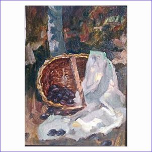 Натюрморт корзина со сливами, холст на картоне, масло, 27х36, 2018 год.