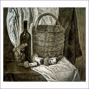 Натюрморт с корзиной, бумага, уголь, пастель, 50х43, 2016 г.