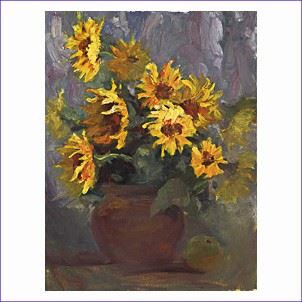 Bouquet of sunflowers, oil on canvas on cardboard, 30x40, 2018.