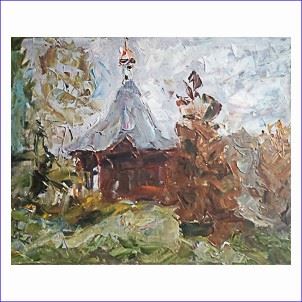 Study with a chapel, oil on canvas, palette knife, 35x44, 2019.