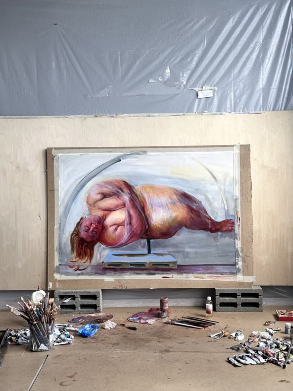 The second project is even more emotional. It’s called «Feeling in a Package.» It’s also done in large formats and touches on deeply emotional themes. I work with corporeality, and in this project, it’s about the body and emotional memory through painting. It’s a metaphor for packaging as a symbol of storing feelings.