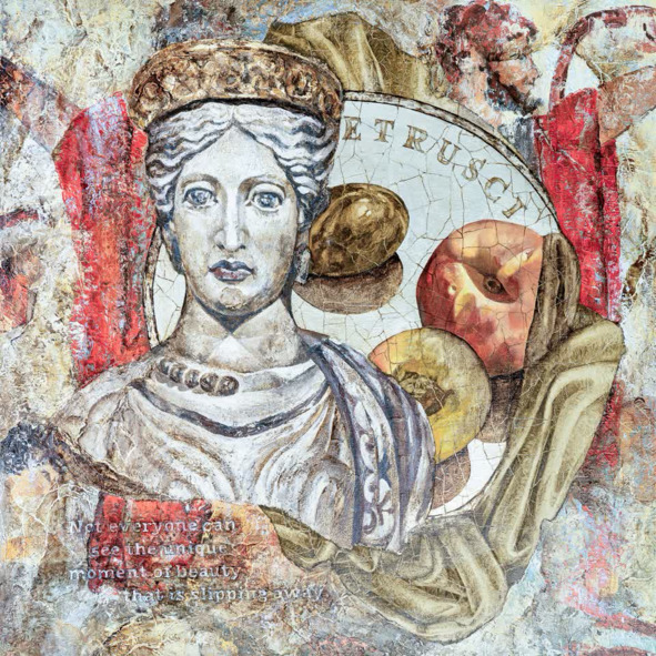 Каждая моя картина – это сочетание вечного и современного. Я использую древние фрески из разных стран: этрусские, помпейские. Эти фрески разрушены временем, но всё ещё прекрасны. В каждой трещине, в каждой детали – своя история.