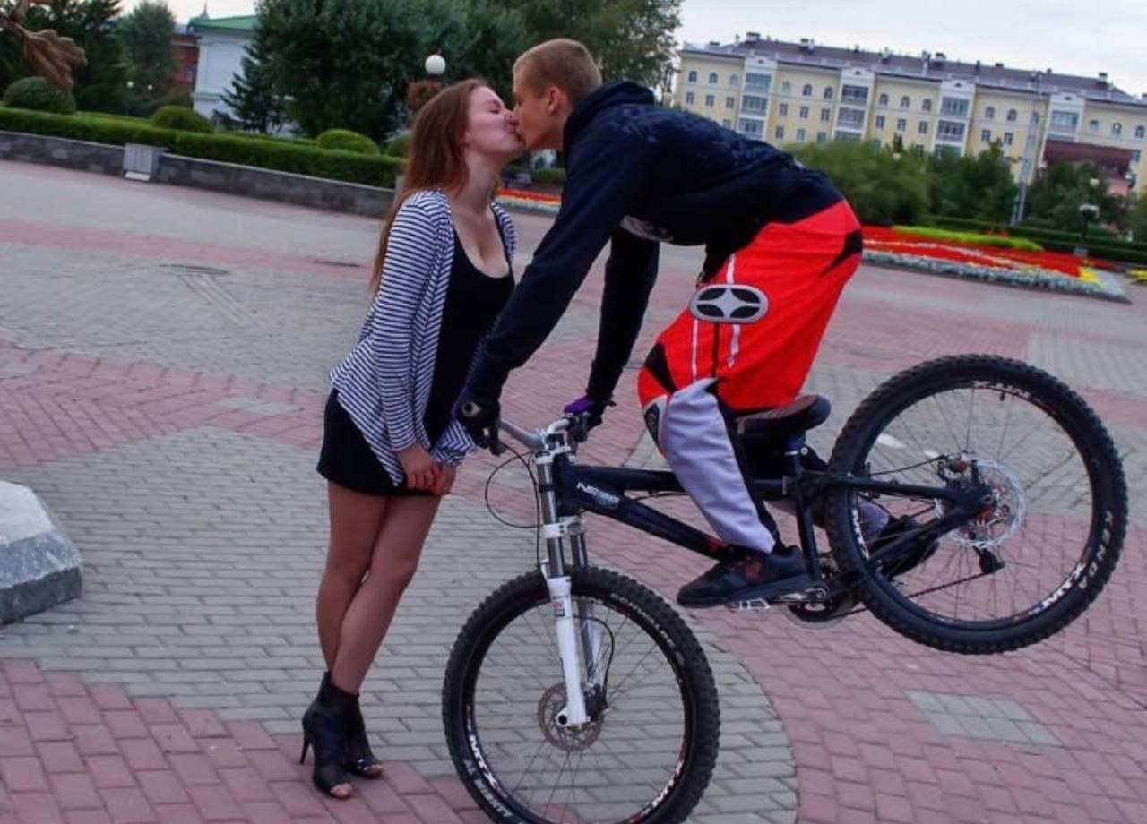 К слову сказать, именно так, исполняя «стопи», ранее я познакомился со своей первой девушкой. Дело было в центре города, смотрю: стоит красивая девушка и её фотографируют. Недолго думая (уверенность на байке зашкаливает), подъехал и договорился с фотографом, а девушке говорю: «Хочешь классных фоток с клёвым парнем на велосипеде?» Она, улыбаясь, кивнула, а я продолжил: «Короче, я подъезжаю к тебе, встаю на переднее колесо и … целую тебя»))). Она с удивлением и интересом посмотрела на меня, а я исполнил «стопи» и поцеловал ее, так мы и познакомились.