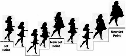 Set point. Если представить шкалу от идеального веса до самой крайней степени ожирения, то ваш set point может находится в любой точке. Чем старше вы становитесь и чем чаще нарушаете ЗАКОНЫ СТРОЙНОСТИ, тем вероятнее, что ваш set point, будет находится ближе к правой стороне шкалы.
