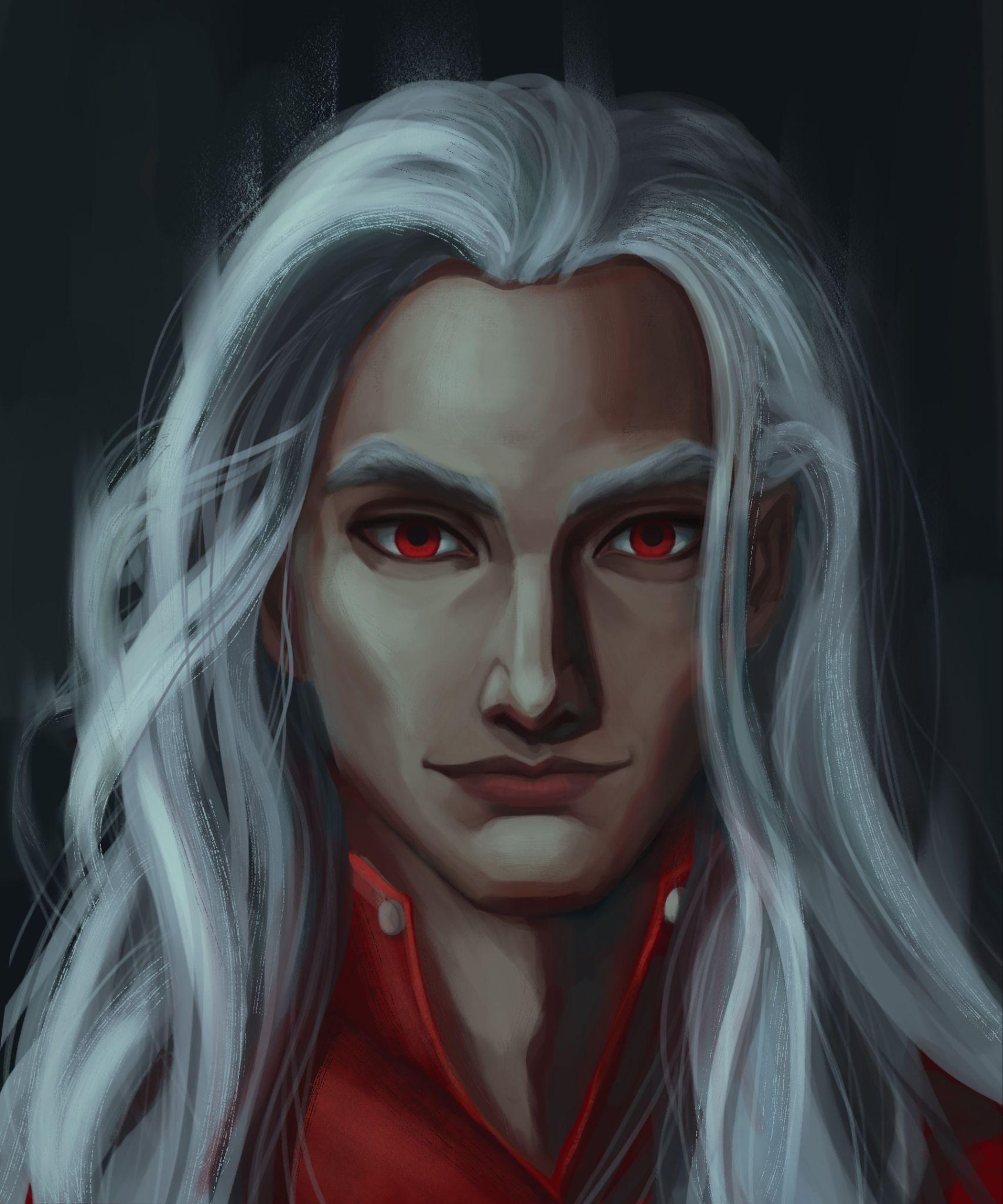 В бликах огня его белые волосы отливали золотом, а алые глаза будто бы приобретали насыщенность. Чуть подавшись вперед, он взял бутылку и налил немного вина.