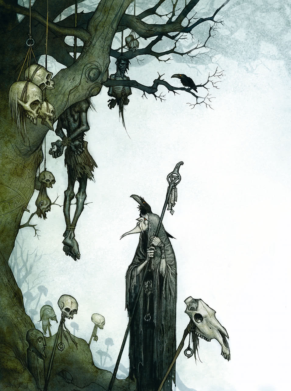 Когда Одину не удается заглянуть в грядущее самому, он не боится воскрешать и расспрашивать мертвых. Ведь мертвые воспринимают время по-иному, чем живые: для них настоящее, прошлое и будущее слиты воедино. Подходящее место для расспросов умерших – холмы с виселицами, поэтому Одина часто называют «богом повешенных».