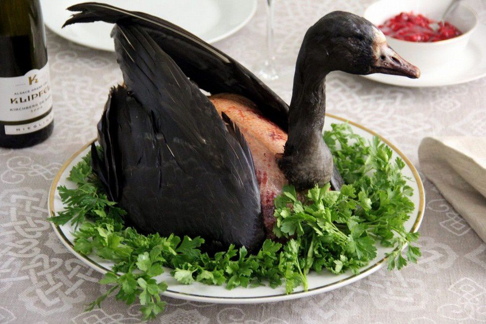 ГУСЬ БЕЛОЛОБЫЙ, ФАРШИРОВАННЫЙ ЛЕСНЫМИ ОРЕХАМИ И БРУСНИКОЙ