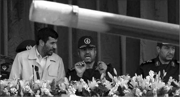 Махмуд Ахмадинежад (слева) с командующим Иранской революционной гвардией Мохаммедом Аль Джафари на военном параде в Тегеране