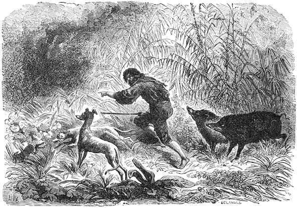 Его хозяином стал буканьер из внутренних земель Санто-Доминго, носивший имя Пальник. Неотесанный, грубый и злой, он находил наслаждение в том, что безжалостно терзал своего нового работника, заставляя его перетаскивать неподъемные тяжести, колотя без всякого повода, просто из желания помучить, и не давал ему иной пищи, кроме объедков, которые предназначались собакам.