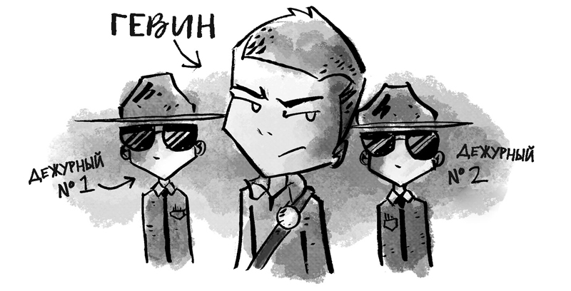 – Теперь я начну, – сказал мальчик в лётных очках. Он повернулся лицом к школьникам и снял свои огромные тёмные очки. Я и раньше видел его в школьных коридорах, но никогда с ним не говорил. Он улыбнулся, но его улыбка была натянутой. – Меня зовут Гевин. Некоторые из вас меня узнали, так как я капитан дежурных по школе. То, что сказал ваш классный руководитель, правда: какой-то ниндзя бегает по школе и создаёт всякие проблемы для меня и моей команды.