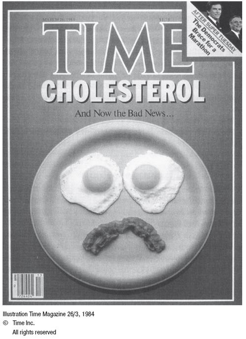 26 марта 1984 года. Отныне при одной мысли о жире американцы должны трепетать от ужаса. Название и начало главной статьи Time развеивает последние сомнения. Ей вторит и фотография грустного завтрака на обложке: глаза глазуньи и беконовый рот сулят невеселое начало дня. Заголовок объясняет остальное: «ХОЛЕСТЕРИН: А теперь плохая новость».