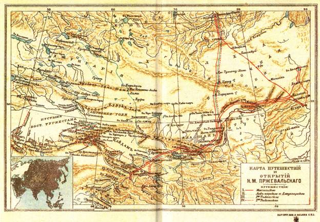 Карта путешествий и открытий Н. М. Пржевальского