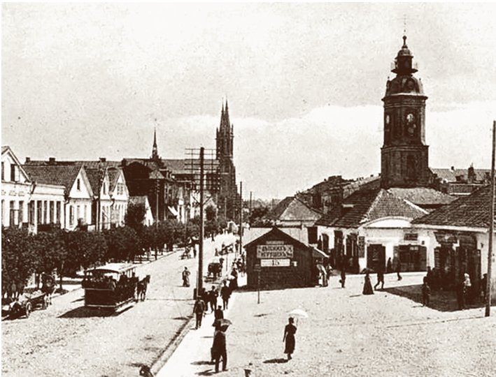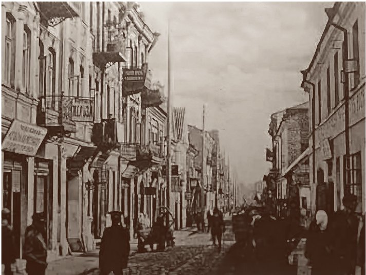 Купеческая улица – деловой центр Белостока. Открытка 1903 г.
