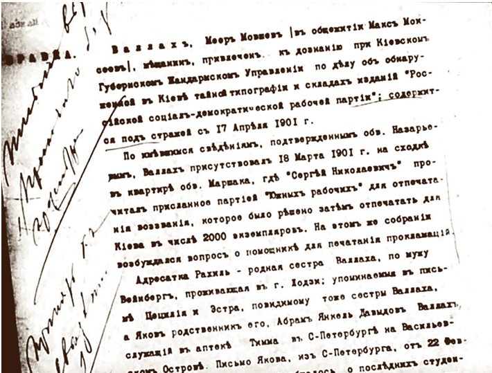 Донесение о революционной деятельности М. Валлаха с упоминанием его родных. (Из открытых источников)