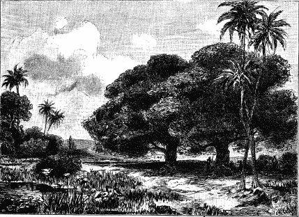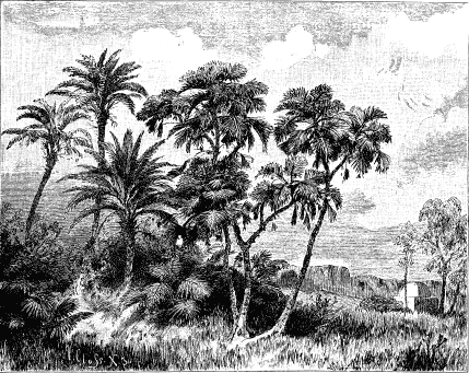 Можно ожидать, что на плодородной египетской почве должен существовать необыкновенно богатый растительный мир; но, хотя растительность пышная, видов ее меньше, чем в любой другой стране, расположенной на той же широте. Деревьев очень мало. Единственные широко распространенные деревья – сикоморы и акация; но и они растут поодиночке, примерно так, как у нас липы или каштаны. Кроме них, есть плодовые деревья – финиковые пальмы, пальмы дум, смоковницы и другие. Нехватка древесины – настоящее бедствие для Египта. С травянистыми растениями дело обстоит так же: в этой земледельческой стране царят овощи, а дикие цветы почти невозможно найти.