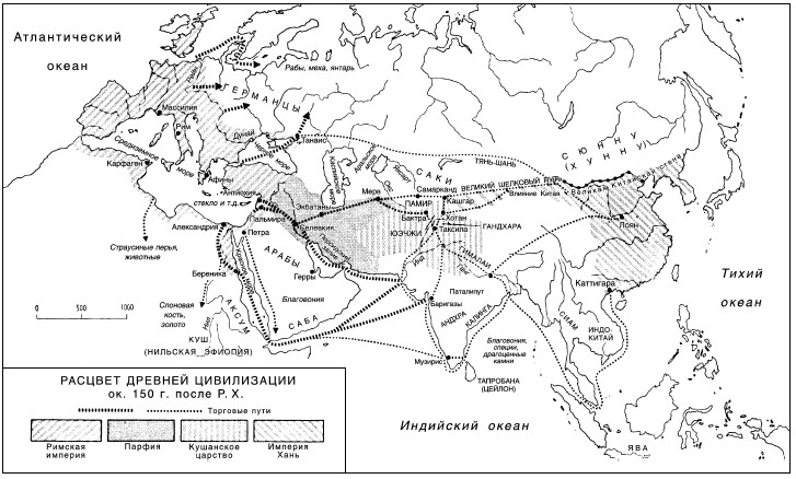 113–117. Восточная война. Парфянский царь Хосрой нарушает старый договор с Римом: он сажает на престол в Армении правителя-марионетку (ИЗ). Траян (которому к тому времени уже исполнилось шестьдесят лет) совершает бросок на восток, наносит парфянам не одно поражение и захватывает Армению и Северную Месопотамию (114). После этого Траян вторгается в Ассирию и Южную Месопотамию, захватывает столицу парфян, г. Ктесифон, и доходит до Персидского залива. Римские корабли с баз в Египте проходят по аравийским побережьям Красного моря и Персидского залива. Хосрой набирает новую армию и совершает нападение на римские войска, которые были разбросаны по разным районам Месопотамии и Ассирии в целях установления здесь более прочного римского господства. Траян, находившийся в Южной Месопотамии, был отрезан от своих войск (115). Траяну удается собрать рассеянные по стране войска и, несмотря на неудачу при Хатре, снова вернуть под свое владычество большую часть Месопотамии и Ассирии (116). Траян подавляет восстание в Иудее (117) и собирается возобновить боевые действия в Месопотамии в следующем году. В это время он заболел и оставил командующим в Сирии и Месопотамии своего земляка Публия Элия Адриана. На пути домой Траян скончался.