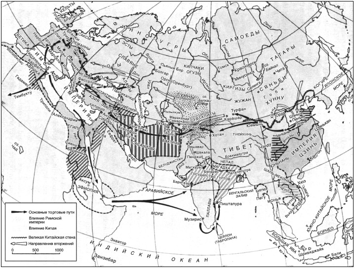 100–200. Упадок династии Хань. Постепенно от Китая отпадают районы к северу и западу от Кансу. Монгольские племена и цзяны (жившие в Тибете) непрерывно совершают набеги против Китая; победы, одержанные китайцами над цзянами в 141–144 гг., лишь на время остановили экспансию кочевников.