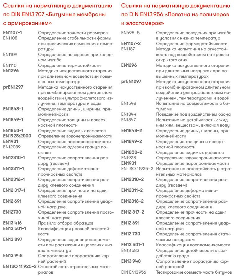 ● EN13 707 – битумные мембраны с армированием;
