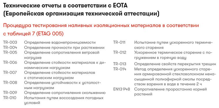 Европейские стандарты, действующие в отношении гидроизоляционных материалов, в большинстве своем не содержат каких-либо требований к свойствам продукции. В качестве характеристик продукции производитель заявляет значения для своего продукта. Это базируется на унифицированных и стандартизированных европейских процедурах тестирования. Однако статистический базис для указания значений в стандартах описывается весьма скудно, поэтому такие значения различных производителей прямого сравнения не допускают. Проблемы возникают в тех случаях, когда вам необходимо проводить сравнение в соответствии с существующими требованиями.