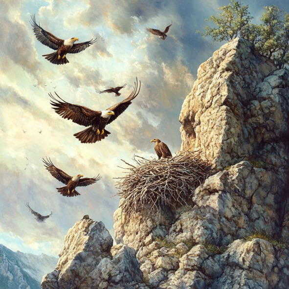 Вороны испугались и улетели, а орлята сказали кукушонку: